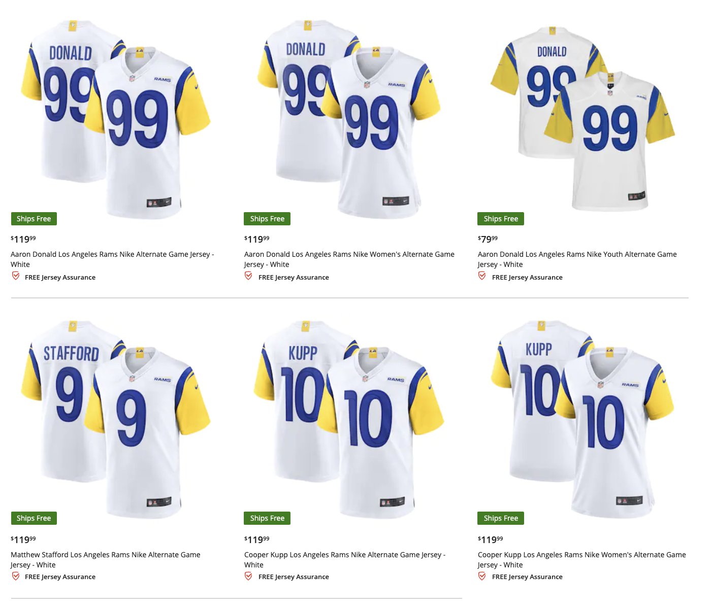 Los Angeles Rams Jerseys For Women Youth Or Men Customizable