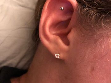 Linda S Body Piercing Top Blue Ring Is A Rook Piercing Shen Men Point For Smoking Cessation Inside Green Ring Is A Daith Piercing For Migrains Call The Shop If You Would